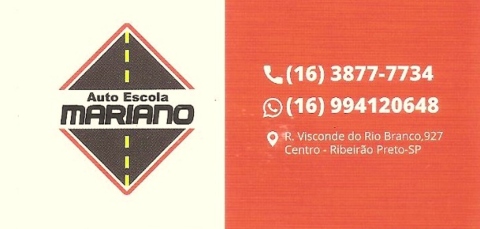 AUTO ESCOLA MARIANO / Ribeirão Preto SP AUTO ESCOLA MARIANO Rua Visconde do Rio Branco nº 927 = CEP 14015-000 Telefones 16 – 3877-7734 Whatsapp 16 – 99412-0648 Ribeirão Preto – SP