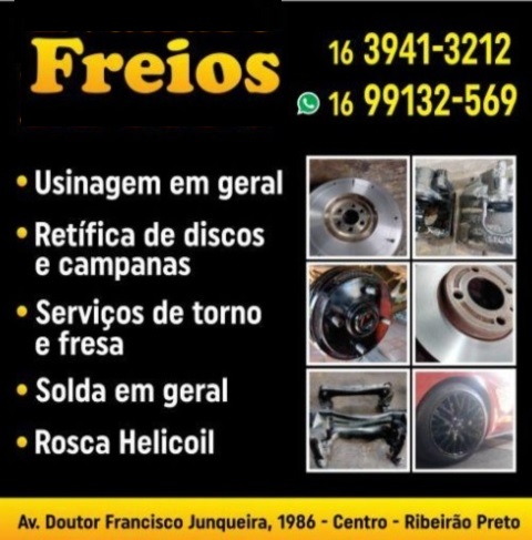 CÉLIO FREIOS | Ribeirão Preto SP Usinagem em Geral Retífica de Discos e Campanas Serviços de Torno e Fresa Solda em Geral | Rosca Helicoil Avenida Dr. Francisco Junqueira, 1986 Centro Telefones 16 – 3941-3212 e Whatsapp 16 – 99132-5869 Facebook = Clique Aqui Ribeirão Preto – SP