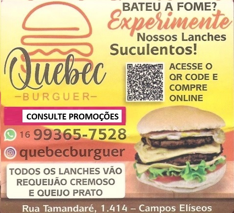 QUEBEC BURGUER / Ribeirão Preto SP Rua Tamandaré, 1414 Campos Elíseos CEP 14085-070 Instagram: Clique Aqui Whatsapp 16 – 99365-7528 Ribeirão Preto – SP