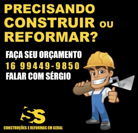 SS CONSTRUÇÕES E REFORMAS EM GERAL | Ribeirão Preto SP SS CONSTRUÇÕES E REFORMAS EM GERAL SÉRGIO PEDREIRO FAÇA SEU ORÇAMENTO: Whatsapp: 16 – 99449-9850 Ribeirão Preto – SP