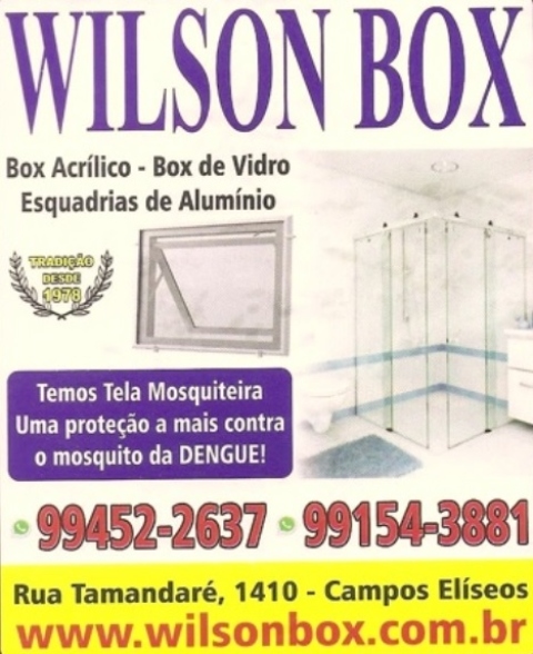WILSON BOX / Ribeirão Preto SP Rua Tamandaré, 1410 Campos Elíseos CEP 14085-070 www.wilsonboxrp.com.br wilsonbanhobox@gmail.com Facebook: Clique Aqui Instagram: Clique Aqui Telefones Whatsapp: 16 – 99452-2637 e 16 – 99154-3881 Ribeirão Preto – SP